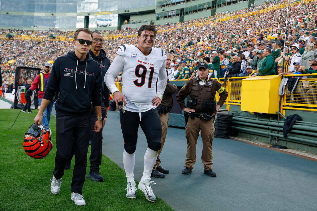 October 12, 2025: Cincinnati Bengals defensive end Trey Hendrickson 91 leaves the NFL, American Football Herren, USA football game between the Cincinnati Bengals and the Green Bay Packers at Lambeau Field in Green Bay, Wisconsin. /CSM Green Bay United States of America - ZUMAc04_ 20251012_zma_c04_267 Copyright: xDarrenxLeex