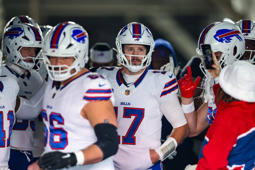 November 30, 2025, Pittsburgh, Pennsylvania, USA: Buffalo Bills quarterback JOSH ALLEN 17 comes out of the tunnel with teammates before the NFL, American Football Herren, USA football game between the Pittsburgh Steelers and the Buffalo Bills at Acrisure Stadium in Pittsburgh, Pennsylvania. Pittsburgh USA - ZUMAg257 20251130_zsp_g257_025 Copyright: xBrentxGudenschwagerx